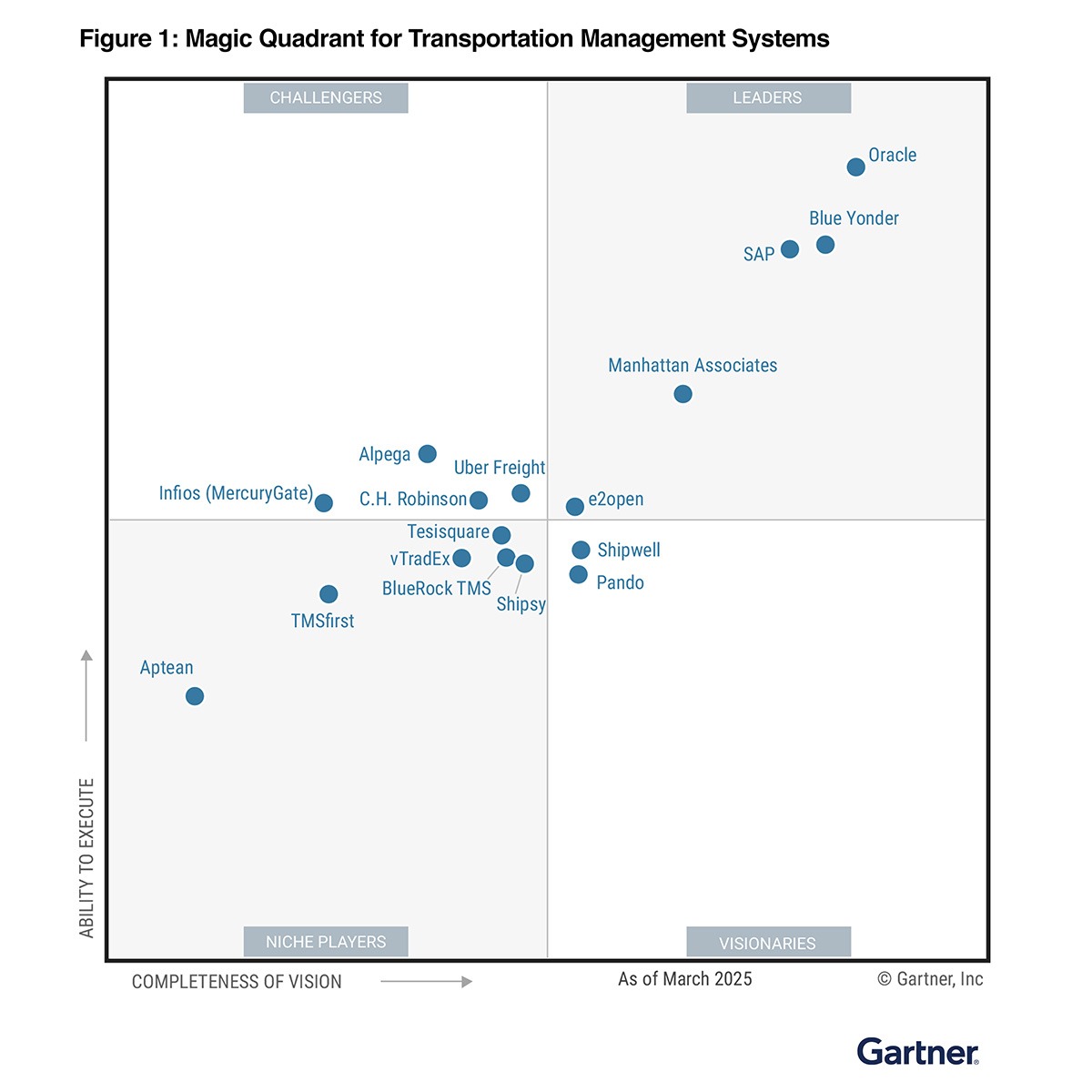 Gartner, Magic Quadrant for Transportation Management Systems, Brock Johns, Oscar Sanchez Duran, Carly West, Manav Jain, 24 March 2025.