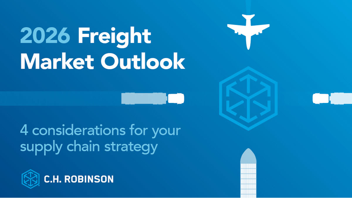 El mercado del transporte de mercancías está cambiando: menos caos, más complejidad. C.H. RobinsonPerspectivas del mercado de carga para 2026 desglosa cuatro consideraciones clave para preparar su estrategia de cadena de abastecimiento para el éxito en 2026: estabilización de tarifas, volatilidad de la política comercial, impactos regulatorios y la creciente importancia de la resiliencia.